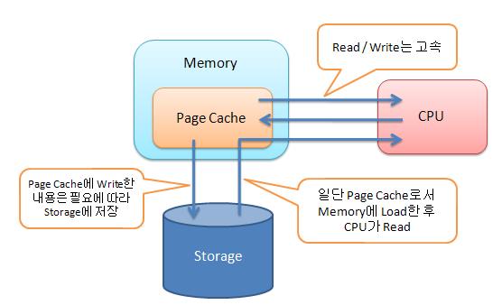이렇게 Read한 Data를 Page Cache로서 재이용합니다. 일단 Load 해 두면 Page Cache는 Read/Write를 Storage에서 Read 해 올 필요가 없으므로 고속처리가 가능하죠.